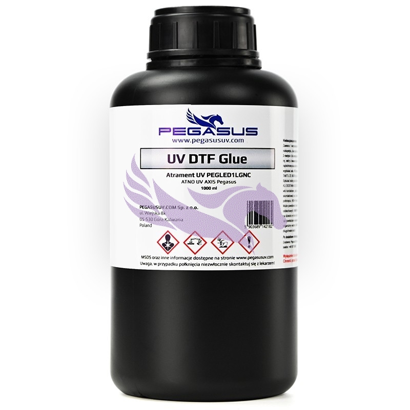The most notable features of Pegasus UV ink are its high resistance to mechanical factors, vibrant color depth, excellent adhesion, and, most importantly, its safety for print heads.